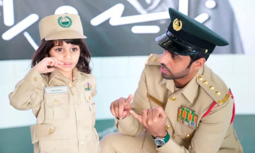 പൊലീസ് യൂണിഫോമിൽ നഗരം ചുറ്റി മൂന്ന് വയസുകാരി